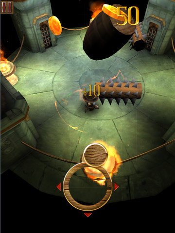游戏是躲避类的游戏,玩家控制小人躲开天上莫名其妙掉下来的酒桶,接住金币,并且小心地下带刺的滚筒。游戏具有华丽的图形显示效果,并且支持视网膜高清显示。