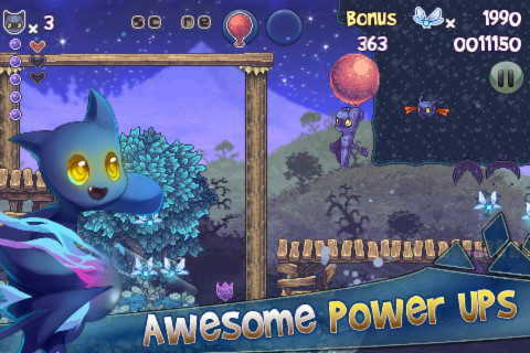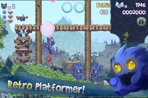 此外游戏中还有字母的收集、猫猫头像铜牌的收集等等各种丰富的元素,而且我们小怪兽要走的路也不是一路畅通的,除了遇到障碍要跳跃之外,还有很多山要翻、悬崖要跳、绳子要爬,甚至紫红色的砖块也是有弹性的,我们还要上天入地每一处角落都不能错过,才能尽可能多的完成游戏进度,所以说游戏的可玩性非常丰富,相对来说难度也比其他横版闯关游戏有所提高。