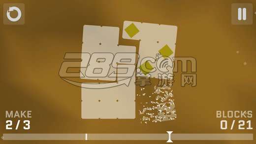 这款游戏的灵感来自于对拼图游戏的反向思考。一般拼图游戏是将各种小部分拼接成一个整体,而在这款游戏中,玩家则要将形状各异的图形切割成几等分。每个大图形由数个正方形组成,玩家要用手指沿着正方形边缘进行切割。游戏内还提供了溶解、交换等方案供玩家选择。当切割完毕便可点击图案进入下一关。